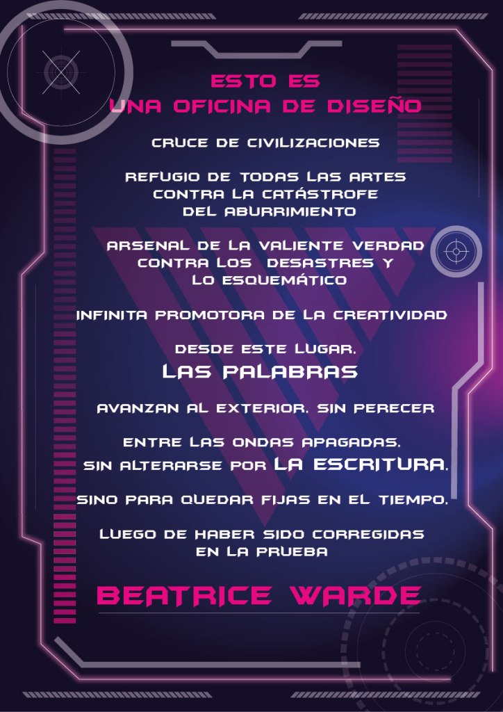 Trabajo de cartel, cuyo objetivo era tomar un manifiesto de Beatrice Warde, una tipógrafa emblemática, cuyo trabajo inspiró y desarrolló el mundo del diseño.